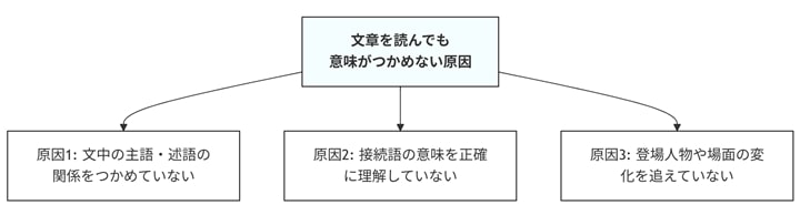 文の構造を理解できないと、主語と述語の関係や修飾語の意味がつかみにくくなります。
