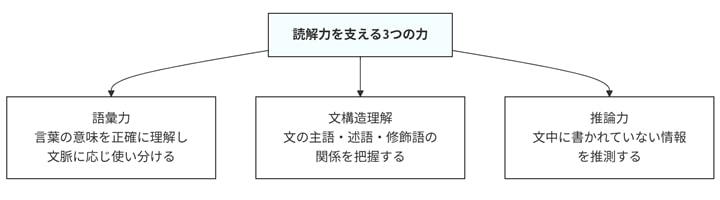 読解力は単なる知識ではなく複数の力の組み合わせで成り立っています。とくに小学生の段階では、以下の3つの力がバランスよく育つことが重要です。